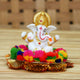 Hindu Gods : Lord Ganesha Idol on Decorative Plate with Colorful Flowers For Home Decor and Car Dashboard