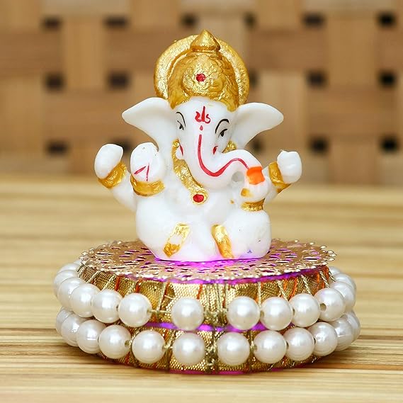 Invite the blessings of Lord Ganesha into your home with this exquisite handcrafted idol. Crafted from high-quality resin, this piece showcases vibrant colors and intricate detailing, making it a perfect addition to your car dashboard, office desk, or home altar.