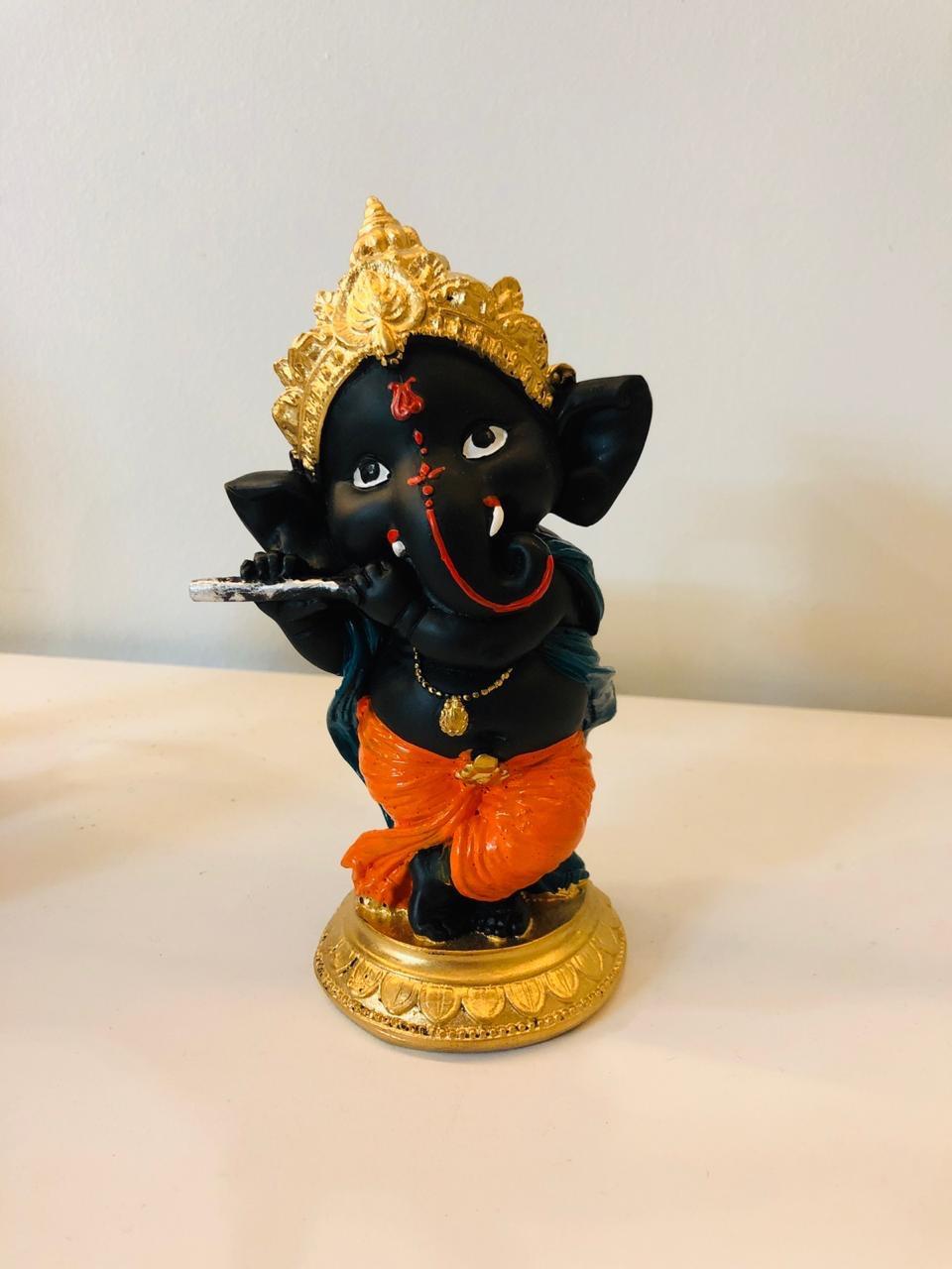 This decorative Ganesha idol is designed with intricate details that enhance its visual appeal, making it the perfect centerpiece for your home or personal altar. The smooth resin finish adds to the idol’s elegance, bringing a sense of calm and spiritual enrichment to any space.