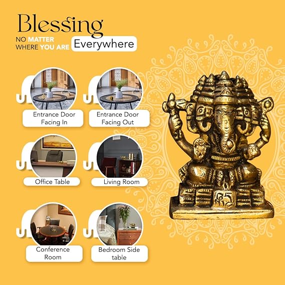 Hindu Gods : Ganesha Pure Panchmukhi Brass Idol for Pooja Room, Home Decor, Office Desk and Car Dashboard