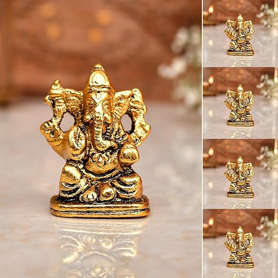 Hindu Gods : Ganesha Metal Idol for Diwali Decoration, Car Dashboard, Home Decor, Office & Tabledesk - Set of 5