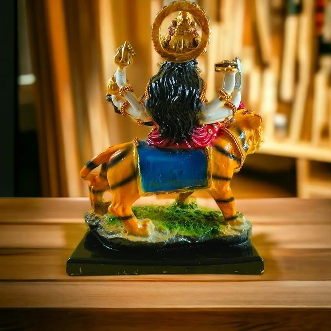 Elevate your spiritual practice and home decor with the exquisite Goddess Durga Devi Idol, a stunning representation of one of the most revered Hindu deities. This magnificent statue, known as Goddess Durga Mata or Shera Wali, is meticulously crafted from 100% solid resin, ensuring both durability and beauty. With dimensions of 8L x 16W x 20H centimeters and a weight of 525 grams, this idol is perfectly sized for your home mandir, office desk, or any sacred space.
