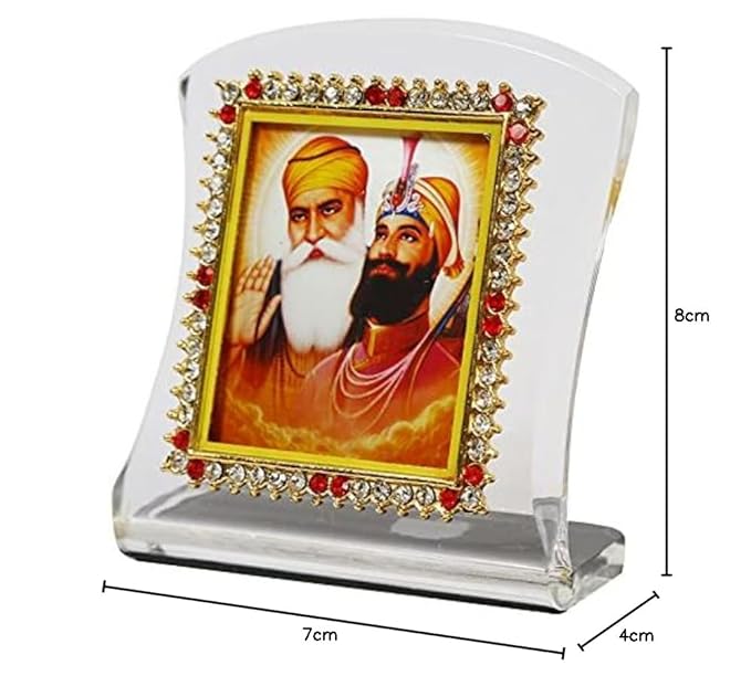 Experience the divine presence of Guru Nanak Dev Ji and Guru Govind Singh Ji on every journey with this exquisite car dashboard idol. Crafted from high-quality acrylic, this piece is both durable and visually appealing.