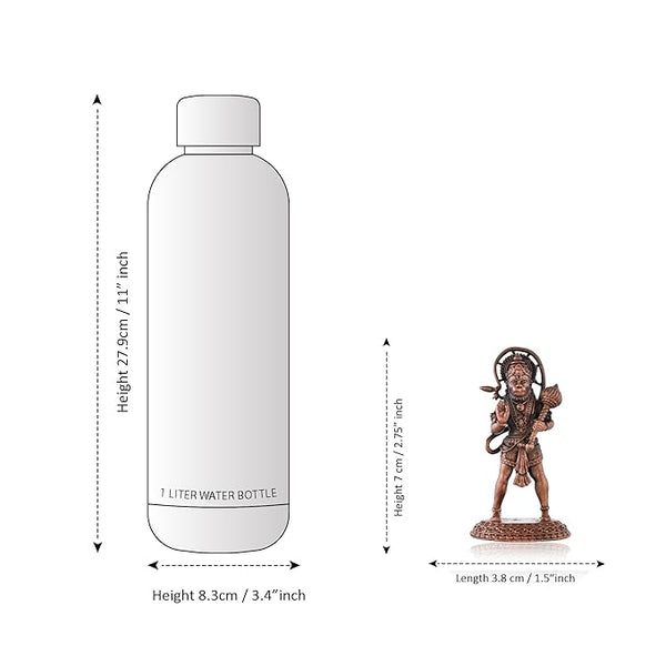 This Hanuman Ji idol is meticulously crafted from high-quality copper, ensuring that it is both visually striking and durable. Measuring 3.8 L x 2.5 W x 7 H centimeters and weighing 250 grams, this compact yet impactful piece is easy to place wherever you desire. The lustrous sheen of the copper adds an elegant touch, making it a captivating centerpiece in your pooja room, living room, or office.