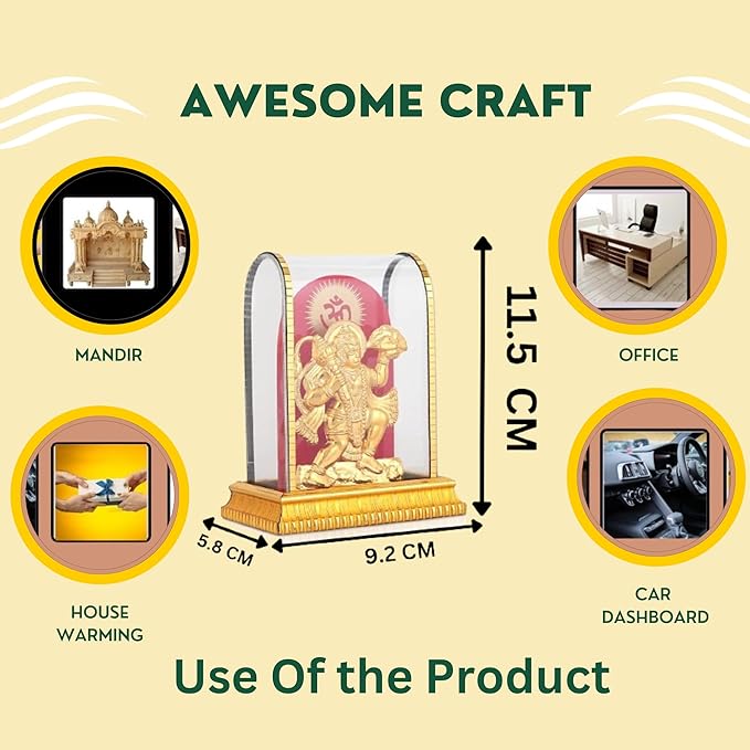 This Hanuman Ji Idol is incredibly versatile, perfect for enhancing your living room, office, or pooja room. Its compact design allows it to fit seamlessly into various settings, making it an ideal choice for those looking to incorporate spirituality into their home without overwhelming their decor. Whether you place it on a shelf, desk, or your altar, this idol adds a meaningful touch to any space.