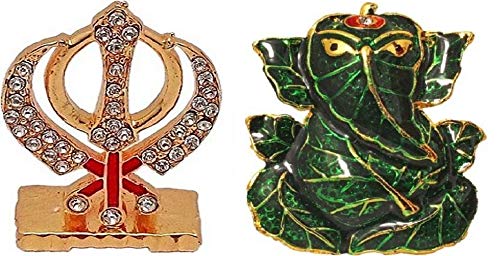 Combo of 2 Punjabi Khanda Symbols of Sikh Idol & God Ganesh/Ganpati/Lord Ganesha Idol - Statue Gift Item Decorative Showpiece