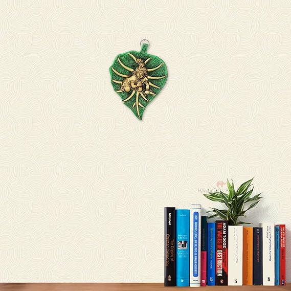 Add a touch of playful charm and spiritual grace to your home with this exquisite metal wall hanging featuring Bal Krishna. Crafted from high-quality metal, this leaf-shaped design beautifully represents the beloved Hindu deity in his childhood form.