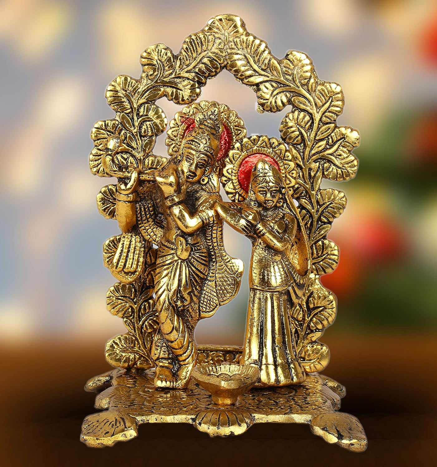 Hindu Gods : Radha Krishna Metal Idol Showpiece for Home Decor, Car Dashboard, Temple Room and Office Decor