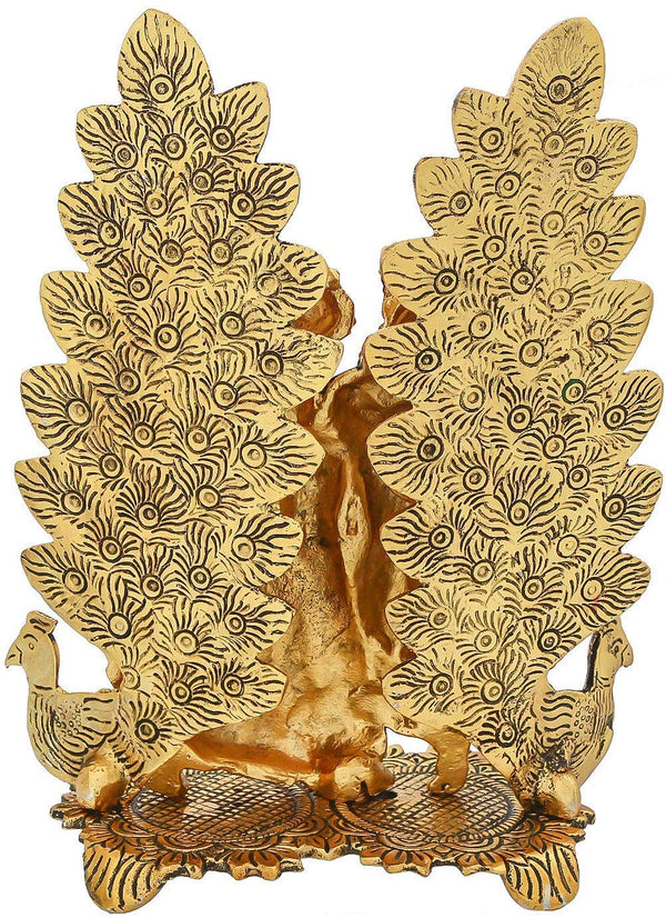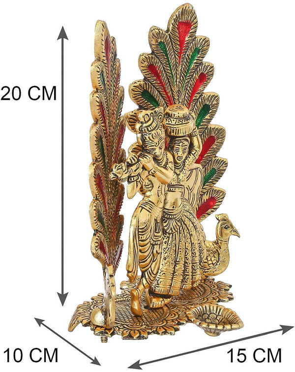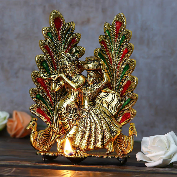 Hindu Gods : Krishna Peacock Design Radha Krishna Idol Showpiece with Diya for Puja and Home Decor