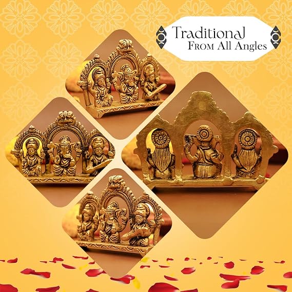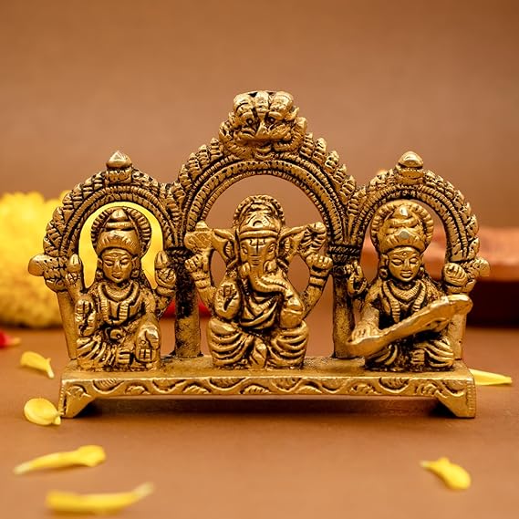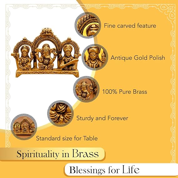 Pure Brass Laxmi Ganesh Saraswati Idol: Invoke Divine Blessings