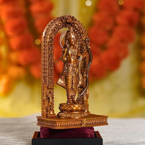 Elevate your space with the holy presence of Lord Ram Lalla. Crafted from premium imported resin, this elegant idol showcases the divine beauty and grace of the Hindu deity.