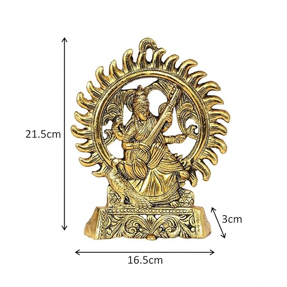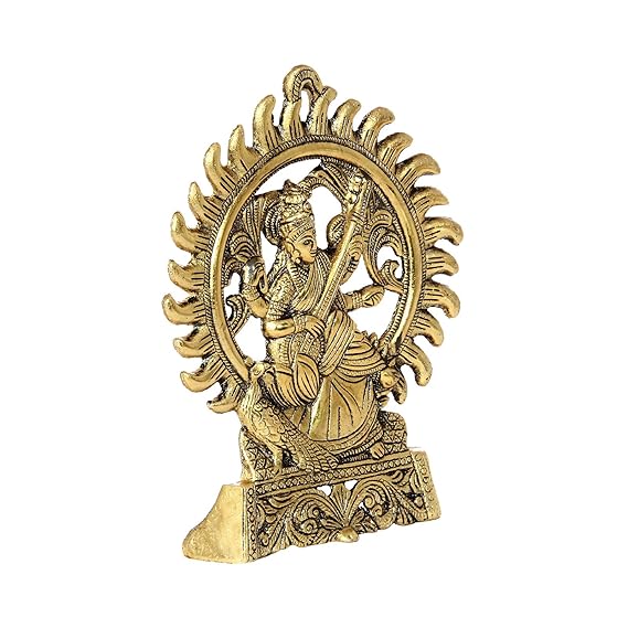 This exquisite metal idol of Goddess Saraswati, the Hindu goddess of knowledge, music, and the arts, is a perfect addition to your home. Handcrafted with intricate details, this statue captures the divine beauty and grace of the goddess, known to bestow wisdom, intelligence, and success upon her devotees.