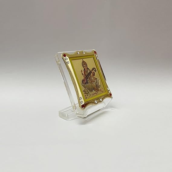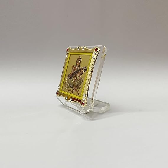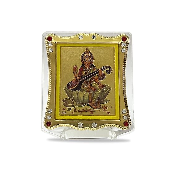 Hindu Goddess : Saraswati Idol For Car Dashboard, Table Decor, Religious Frame for Pooja,Prayer and Gift
