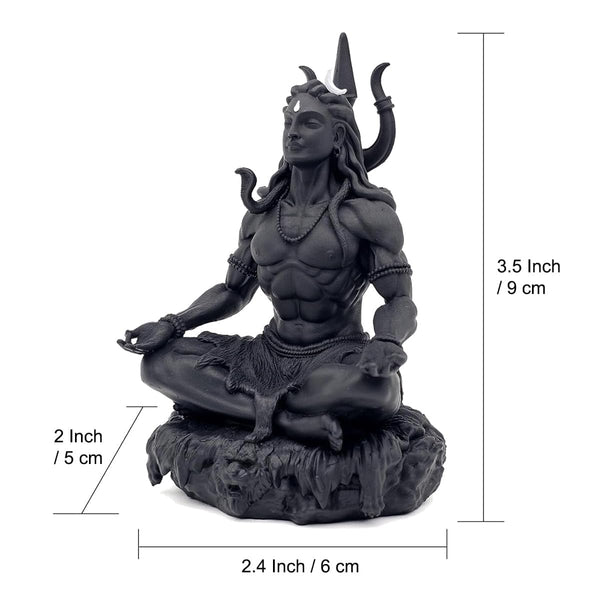 Awaken tranquility and inner power with the striking Black Adiyogi Shiva statue. Crafted from durable resin, this 5L x 3W x 9H centimeters idol brings the transformative energy of the first yogi into your home, car, or office.