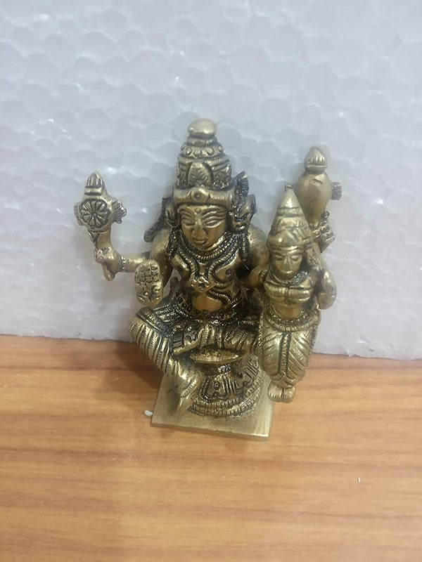 Experience the divine blessings of Lord Vishnu and Goddess Lakshmi with this beautifully crafted brass idol. Depicting the divine couple together, this exquisite statue is a symbol of prosperity, harmony, and good fortune.
