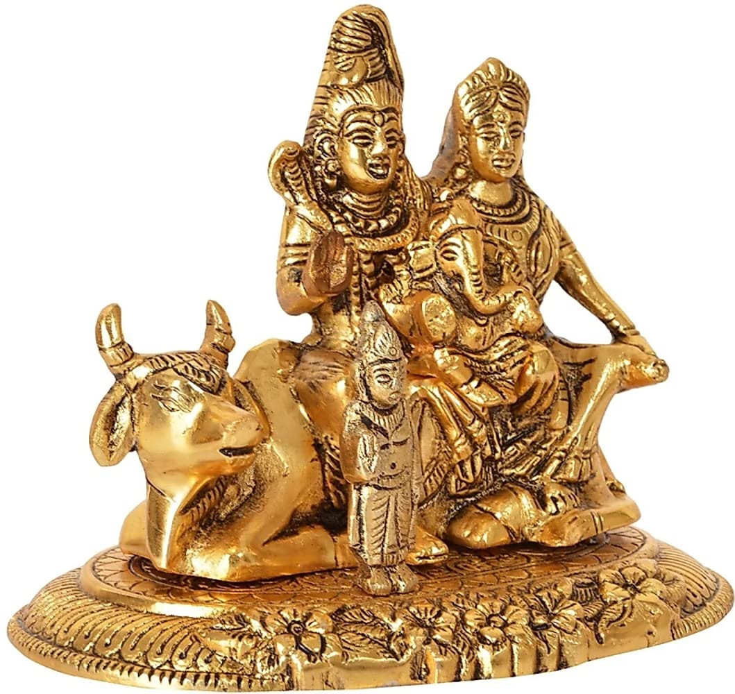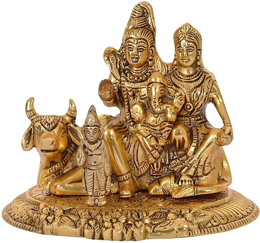 Experience the divine blessings of the Shiv Parivar with this exquisite metal idol. Featuring Lord Shiva, Parvati, Ganesha, and Kartik, this handcrafted masterpiece captures the essence of a united and harmonious family.