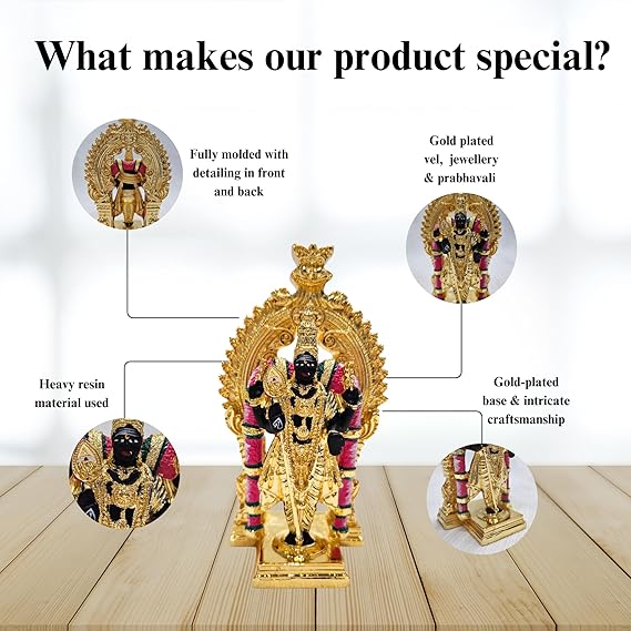 Hindu Gods :Murugan Statue Black and Gold Idol for Car Dashboard, Gifting, Pooja Room Decor & Home Decoration