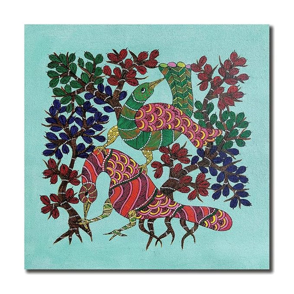 Canvas Print Digital- Beautiful Peacock Gond Art - For Your Beautiful Space - Painting Suitable Size 12X12 inches ½ inch Additional Border Each Side.