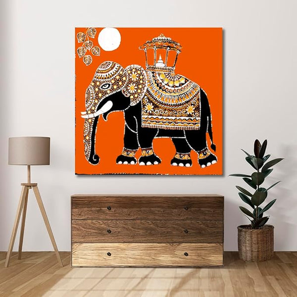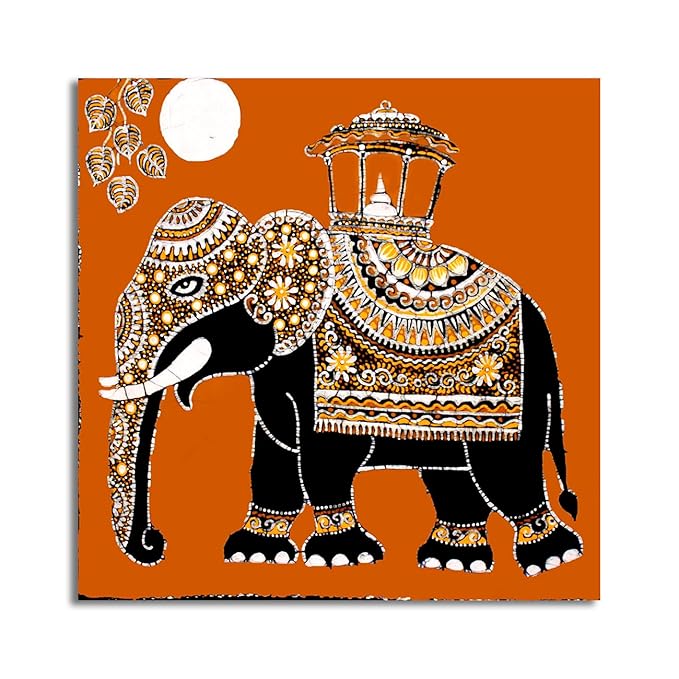 Canvas Print Traditional Art Canvas Paintings, Royal Elephant, Indian Art, Kalamkari Art, Madhubani Art, Canvas painting for Living Room, Rajasthani Art, Unframed, Fabric, Size - 12 X 12 inches.