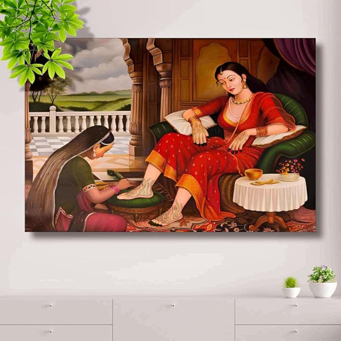 Canvas Print Unframed Rolled Art Print Canvas Rajasthani Woman Wall Painting for Home Decor And Office
