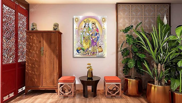 Vibrant Multicolor Design: Bring a touch of spirituality and romance to your home or office with our stunning Radha Krishna wall sticker.