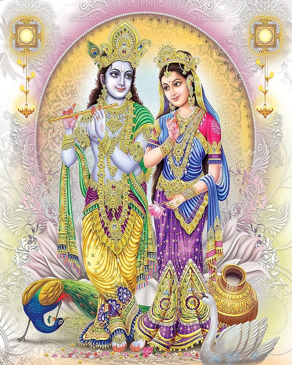 Radha Krishna Hindu Religious Sticker Poster for Home Office Wall Décor (Size 24X36 Inch)