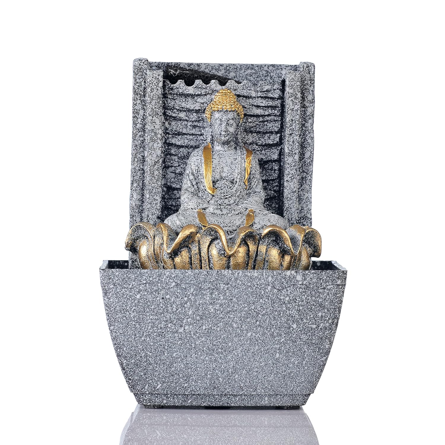 Polyresin Table Top Indoor Outdoor Lord Buddha Water Fall Fountain with LED Lights