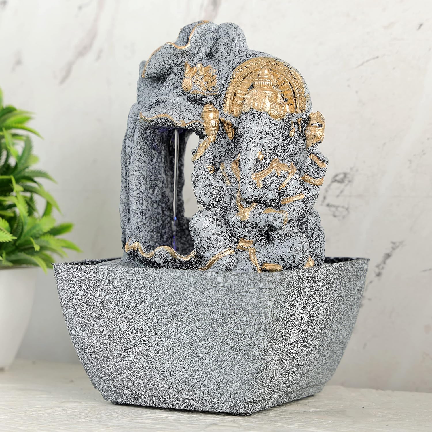 Divine Serenity: Polyresin Lord Ganesha Hindu Gods Tabletop Fountain