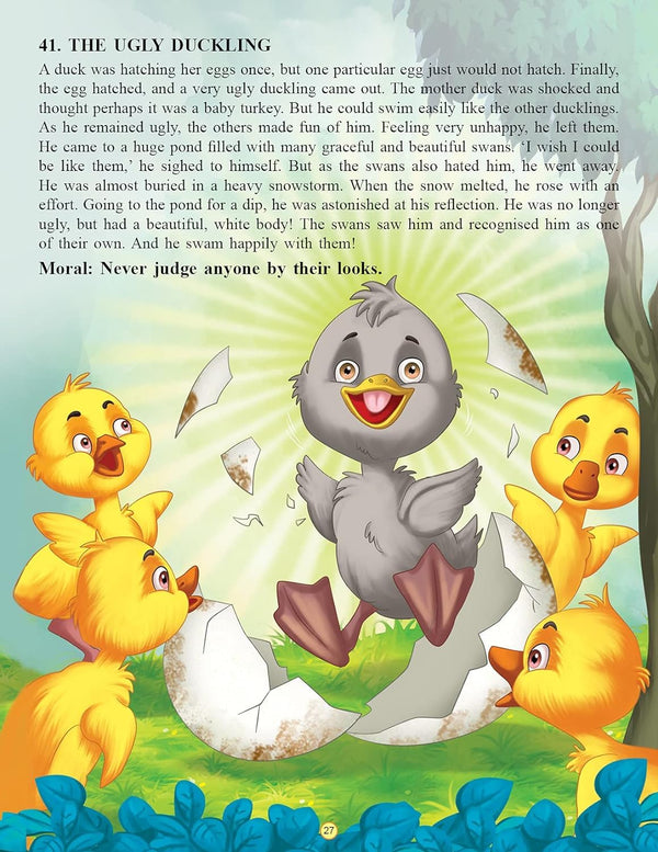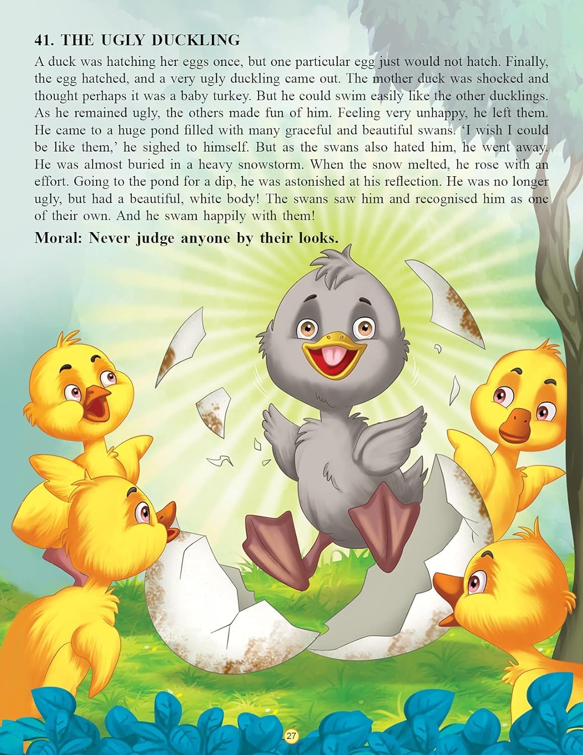 Lush Visuals Bring Stories to Life: 101 Fairy Tales with Moral boasts lush, vibrant illustrations on every page. These captivating visuals not only enhance the reading experience but also help children visualize the fantastical characters and settings within each story.