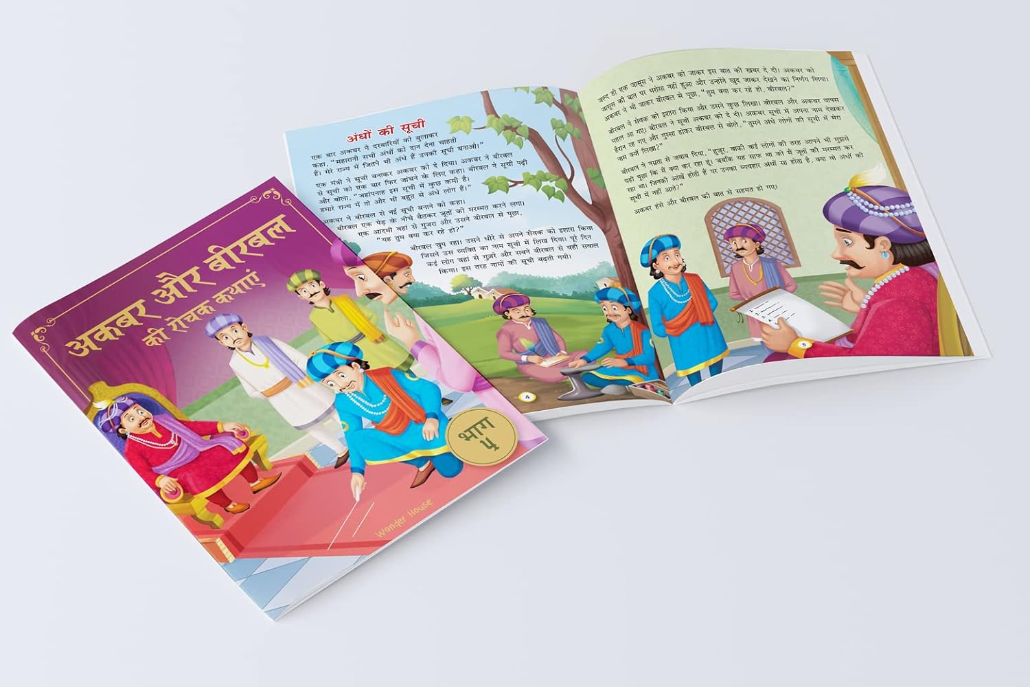 Immerse your child in the fascinating world of Mughal India with this captivating collection of 10 Hindi paperbacks featuring the legendary tales of Emperor Akbar and his wise advisor, Birbal.