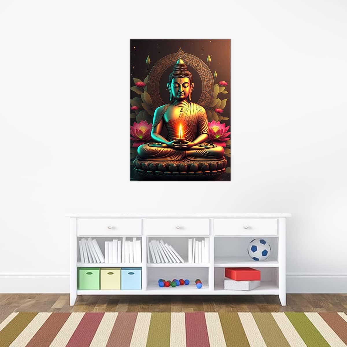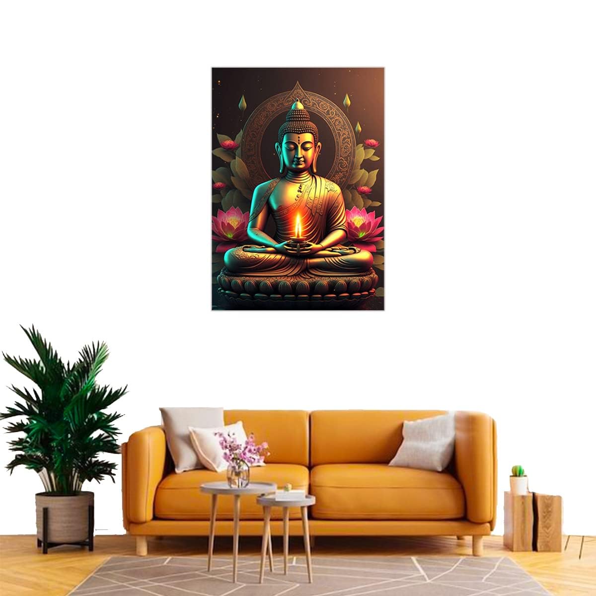 Golden Buddha with Flowers Wall Sticker for Kids Room, Bedroom, Living Room (Multicolor, Size 61Cm X 90Cm)