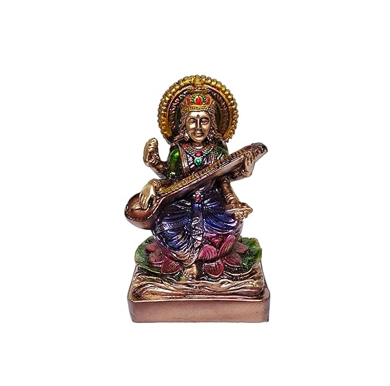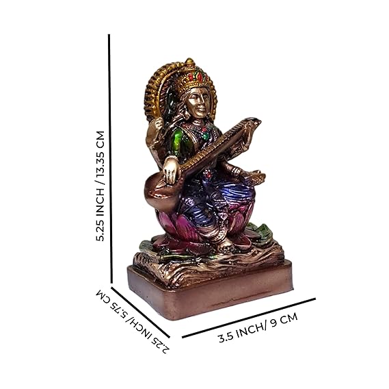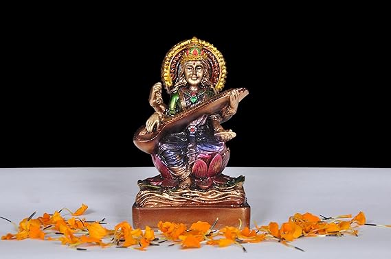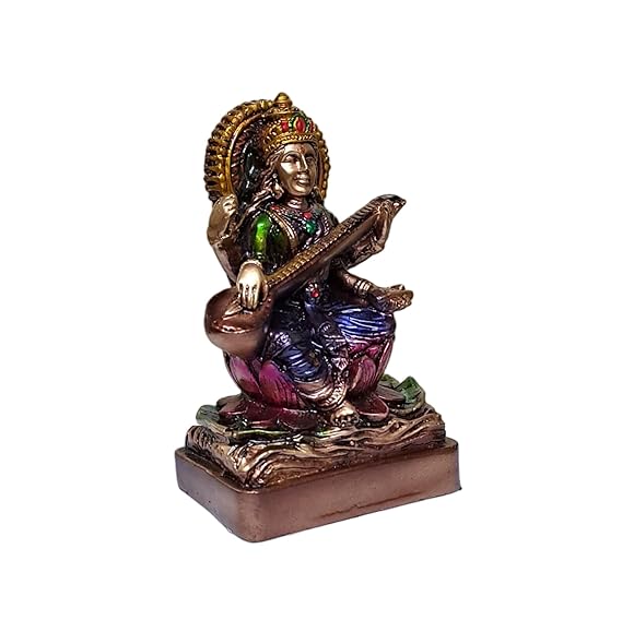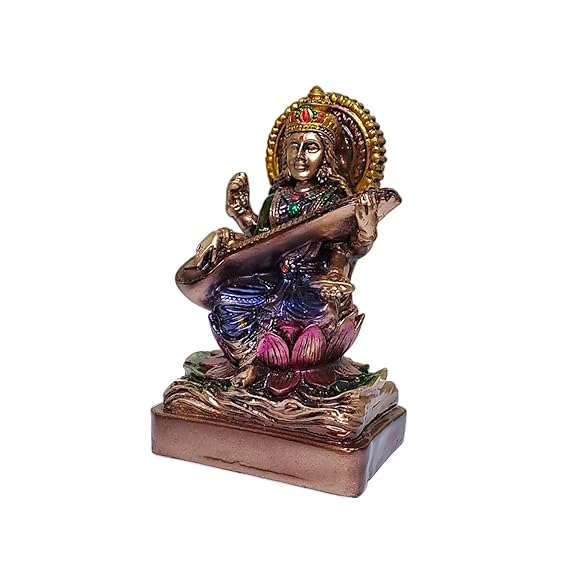 - Elegant Design: The statue depicts Goddess Saraswati holding a veena (a stringed instrument) and a lotus flower, symbolizing music, art, and knowledge.