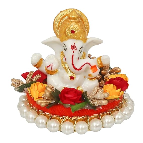 Elevate your space with the enchanting presence of Lord Ganesha. This exquisite statue, expertly handcrafted on a decorative plate, is a perfect blend of artistry and spirituality. Crafted from high-quality resin, it ensures durability and a long-lasting shine.
